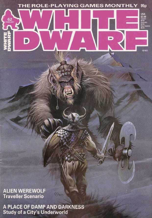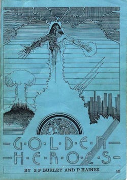 In February 1985 I was reading a review of a game called Golden Heroes published by Games Workshop in Issue 62 of White Dwarf Magazine, my only source of RPG news at that time. I was intrigued as here was a superheroic roleplaying game from a UK centric rather than a US viewpoint. Ironically this game was designed to be the official Marvel Superheroes RPG until it was pipped to the post by TSR who released their own Marvel game at around the same time.